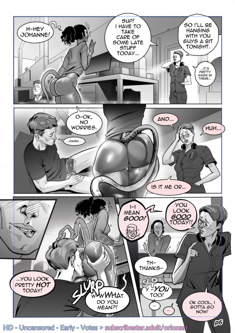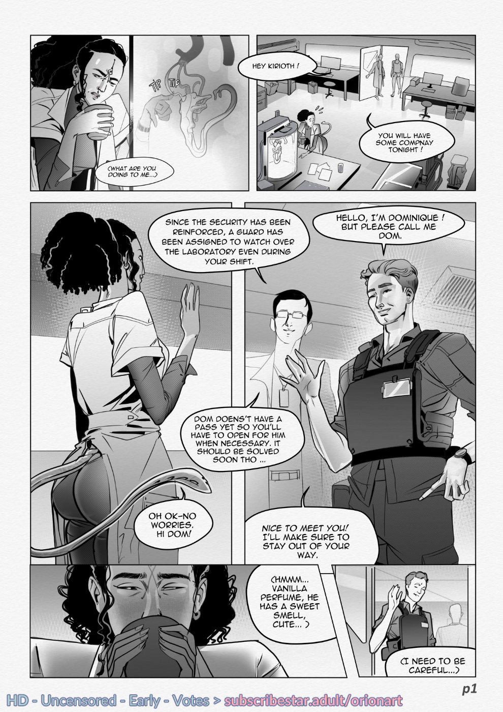 Kirioth’s steamy pheromone-fueled encounter with security guard Dominique. Erotic comic full of uncontrollable lust, exhibitionism & voyeurism – adult transformation series continuation.