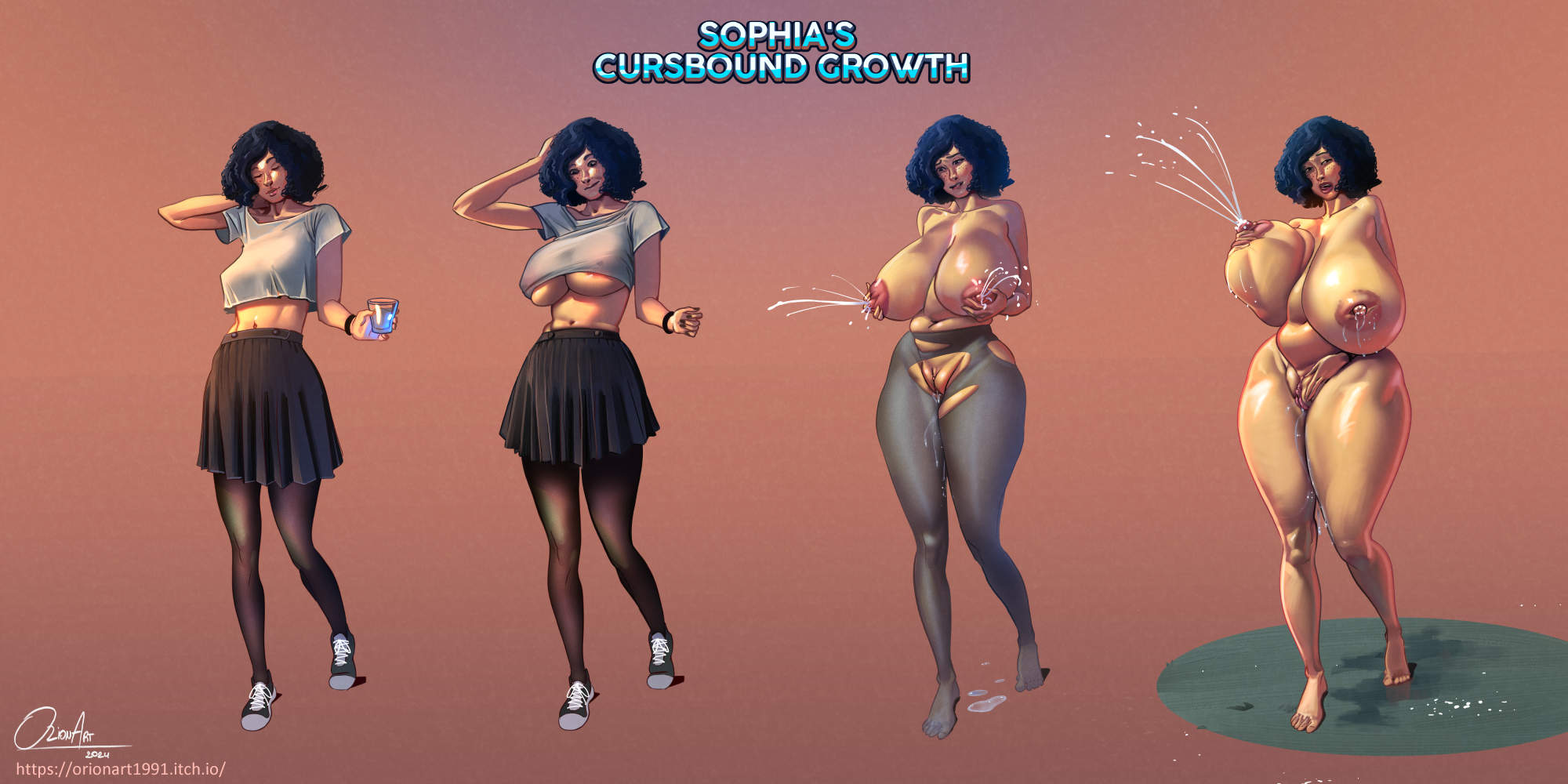 ass expansion, belly expansion, belly growth, breasts expansion, commission, curse, fat, lactation, magic, sophia