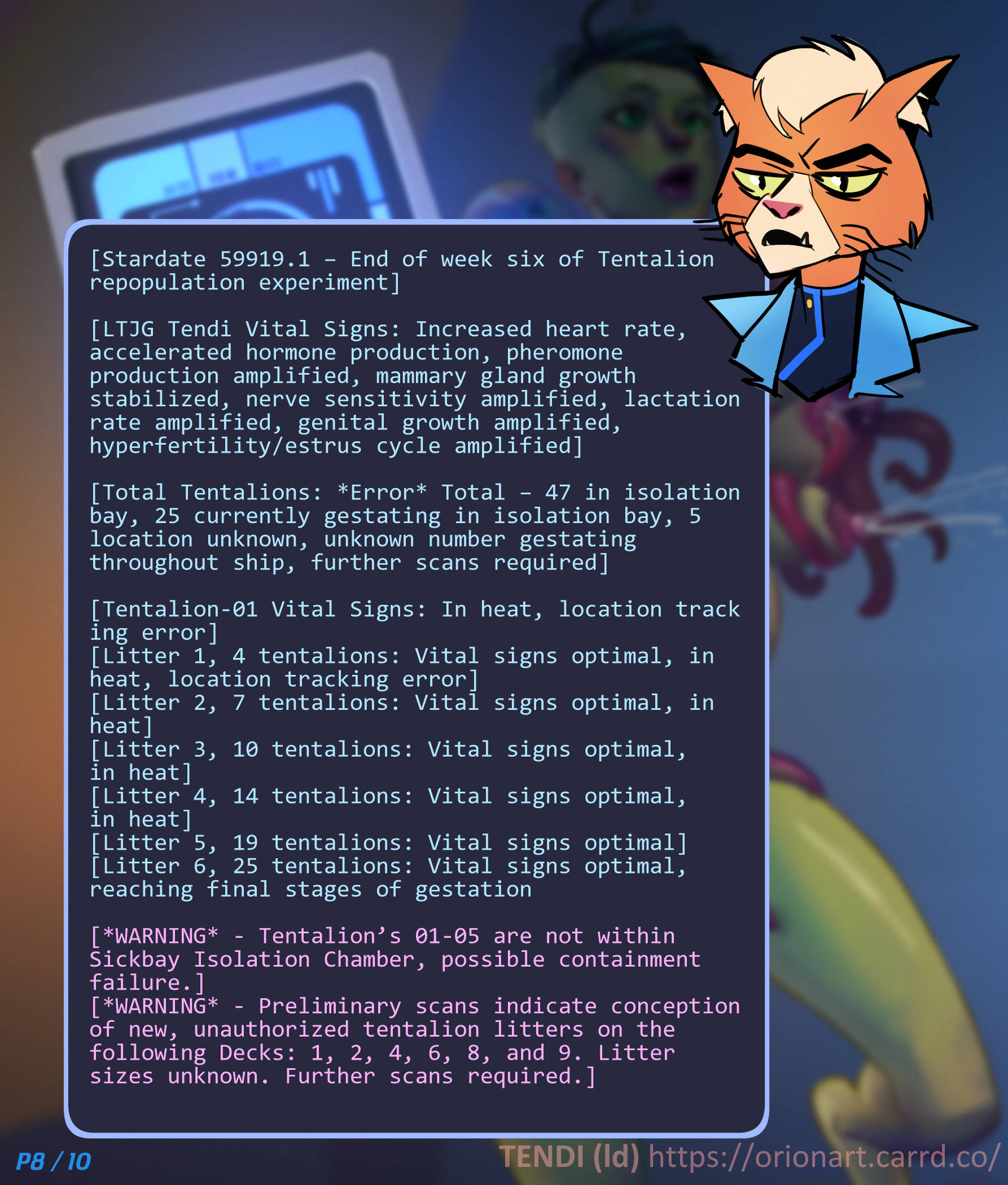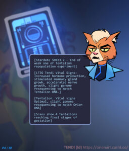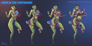 Tendi accepts the changes willingly as she becomes the living incubator for the species, as her belly swells under the repeated impregnations, she grows new row of breasts, full of milk to feed the growing populations of tentalions.