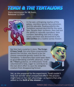 She volunteers for Dr. Tana’s repopulation experiment, offering her body to help preserve the species. The Tentalions quickly multiply and engage in a never ending cycle of breeding and growth!
