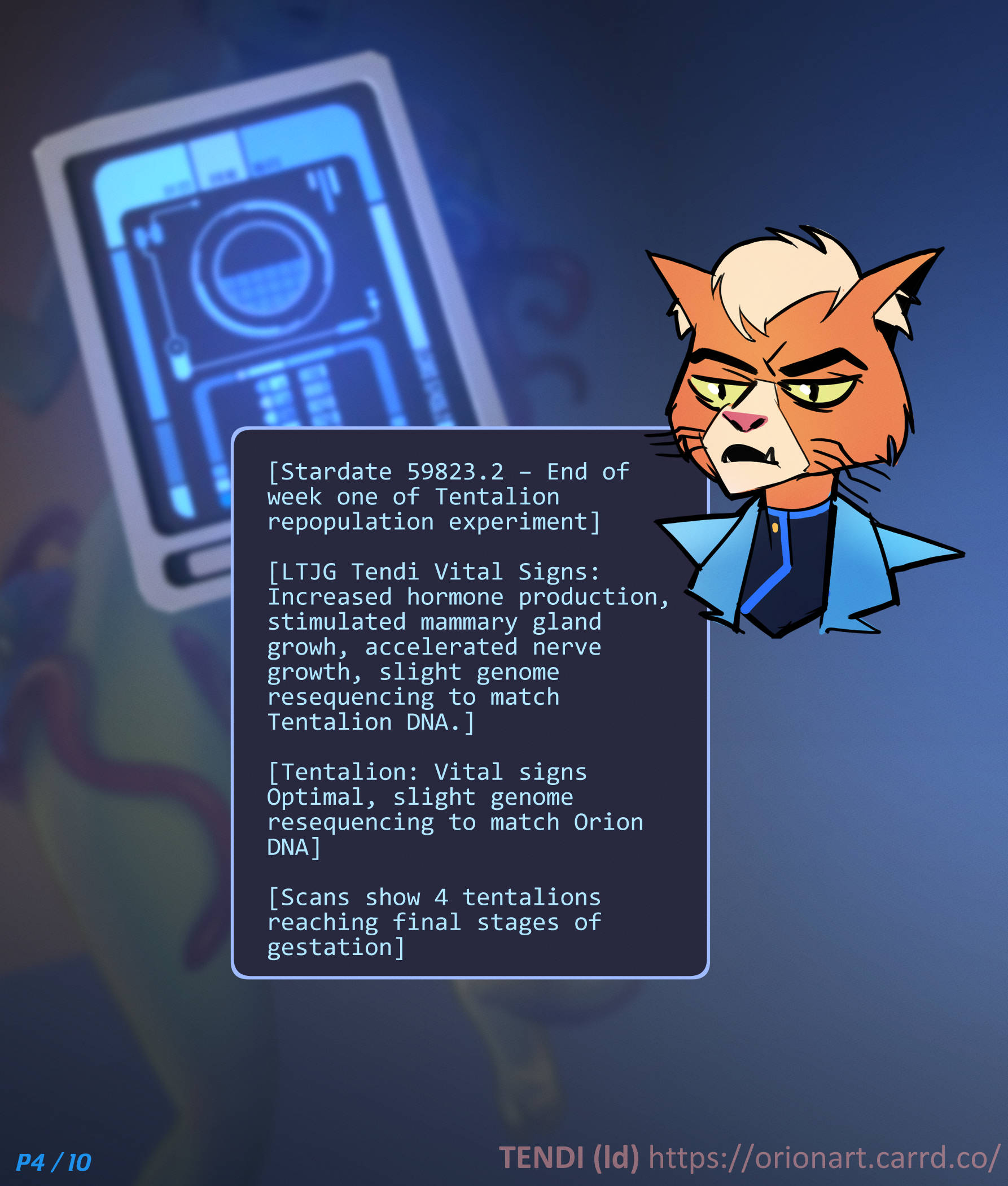 Tendi becomes breeding host for jellyfish-like aliens: tentacles implant, multi-breasts grow, belly swells with impregnation. 10-page Lower Decks fanart transformation.